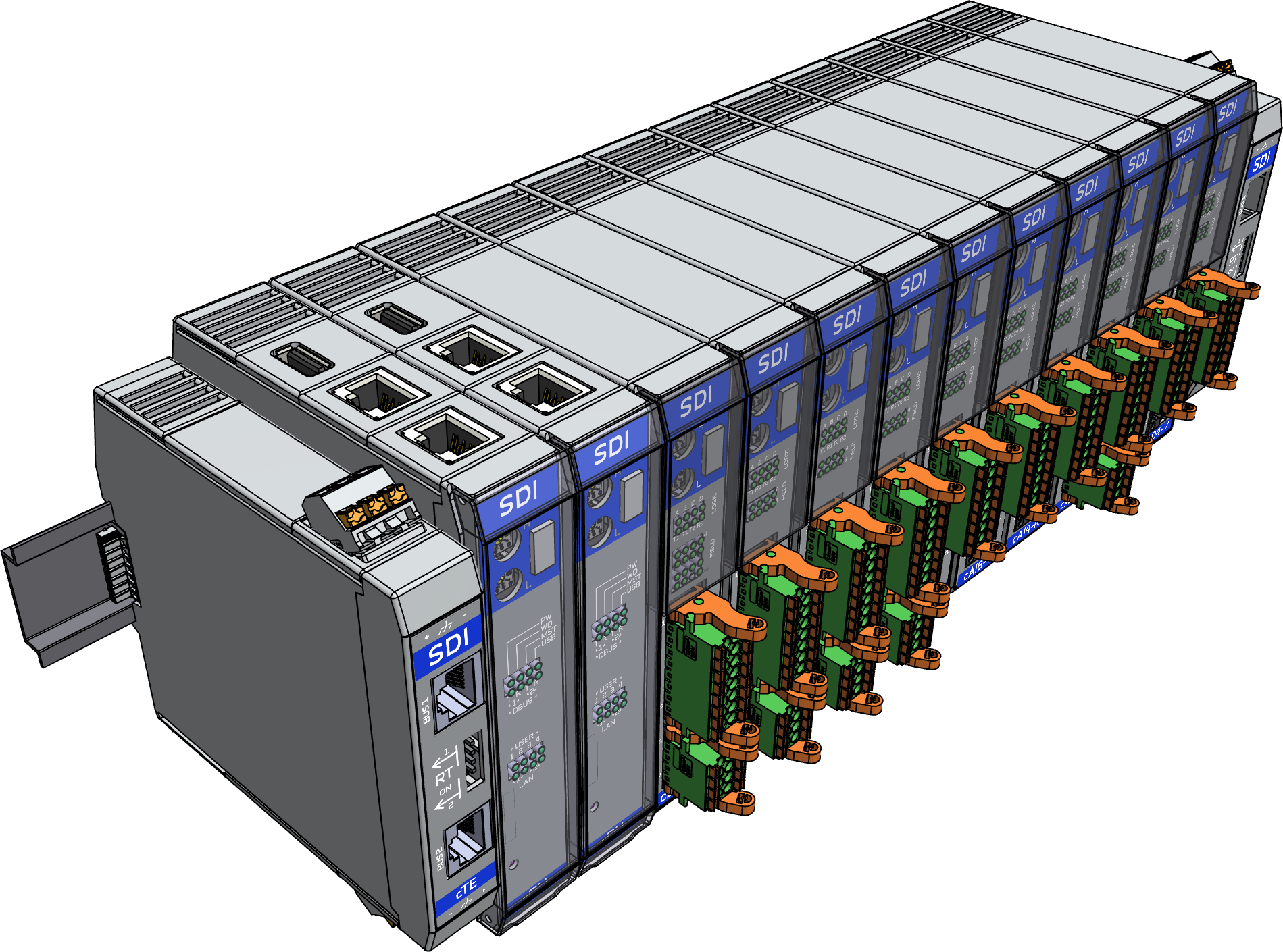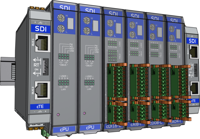 La struttura del Controllore eXPert cSTAR, composta da una barra DIN e componenti altamente robusti collegati tramite cBus ridondante basato su CAN FD, garantisce compattezza e flessibilità di utilizzo in contesti in cui lo spazio è un requisito essenziale, mantenendo la tipica affidabilità dei DualBus Controllers di SDI. La conformità ECM è raggiunta senza la necessità di un armadio metallico.