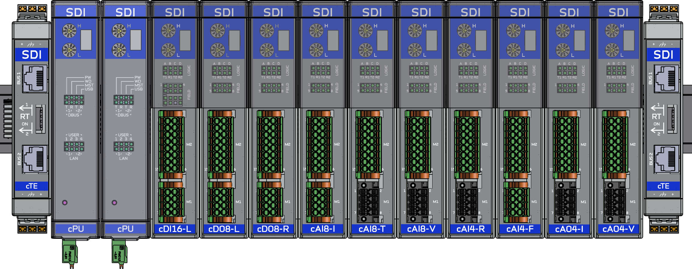 le schede CPU, che possono operare in una configurazione ridondante (logica master-slave) con backup caldo, governano le schede di I/O cablato attraverso il cBus ed implementano I/O via protocollo e logiche di automazione