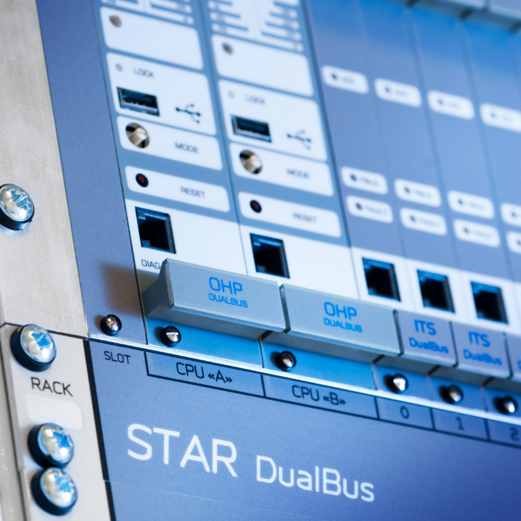 La struttura del Controllore eXPert cSTAR, composta da una barra DIN e componenti altamente robusti collegati tramite cBus ridondante basato su CAN FD, garantisce compattezza e flessibilità di utilizzo in contesti in cui lo spazio è un requisito essenziale, mantenendo la tipica affidabilità dei DualBus Controllers di SDI. La conformità ECM è raggiunta senza la necessità di un armadio metallico.